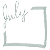 ネットショップ、バナー広告のアイコン(twitter,mixi)、webデザイン素材:大人可愛いブルーグレーの手描き文字「july」(7月)とラインの囲み枠(200×200pix)