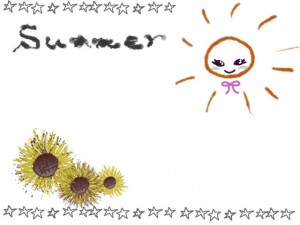 大人可愛い太陽と手書き文字Summerと星いっぱいのフレーム