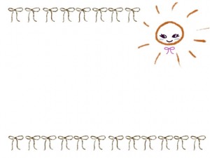 ガーリーな太陽と抹茶色のリボンいっぱいの飾り枠のwebデザイン素材
