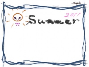 フリー素材:フレーム;夏の海の波みたいなラフな青の手描きラインと太陽のイラストと2011summerの手書き文字のwebデザイン素材