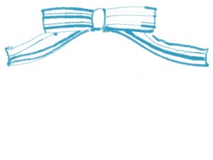 シンプルでガーリーなパステルブルーのシマシマのりぼんのwebデザイン制作のイラスト
