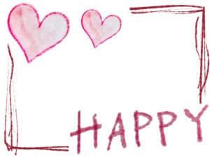 フリー素材:フレーム;ガーリーな水彩色鉛筆のハートと手書き文字「HAPPY」とラフな線の飾り枠