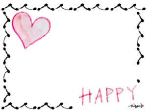 大人可愛い大人可愛いモノクロのフレームと水彩のピンクのハートとHAPPYの手書き文字のイラストと飾り枠