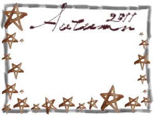 大人カワイイ茶色の水彩の星とAutumn2011の手書き文字と鉛筆のラフな飾り枠