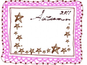 フレームのフリー素材;大人可愛いピンクのレースの飾り枠とブラウンブラックのAutumn2011の手書き文字と水彩の星いっぱいの無料イラスト;640×480pix