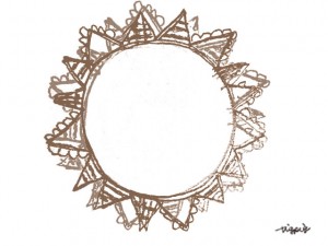 フリー素材:フレーム;大人可愛いブラウンの旗いっぱいの太陽のメダルみたいな鉛筆イラスト;640×480pix