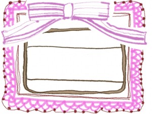 ガーリーなピンクのリボンとレースの飾り枠とラベルシールみたいなイラスト