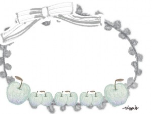 モノトーンのガーリーなリボンとレースと青リンゴの囲み枠