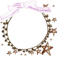 フリー素材:アイコン(twitter,mixi,ブログ);ブラウンブラックのポンポン付きレースの飾り枠と星とリボン;200×200pix