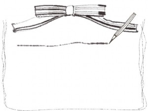 フリー素材:フレーム(バナー広告,メニュー);モノクロの鉛筆とラインとストライプのりぼんの飾り枠;640×480pix