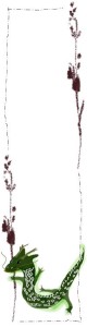 フリー素材:ガーリーな辰と北欧風の茶色の花と枝のフレーム;バナー広告160×600pix