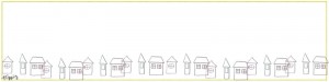 フリー素材:モノトーンの鉛筆画のお家の飾り罫と芥子色の飾り枠;ヘッダー800×200pix;
