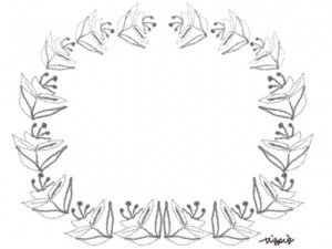 フリー素材:フレーム;モノトーンの北欧風の花と葉の飾り枠:640×480pix