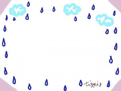 フリー素材:フレーム素材[640pix]<br>  ガーリーな雨降りのイラスト素材