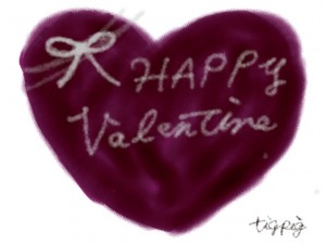 大人可愛い赤紫のハートとリボンと手描き文字HAPPYVlentine