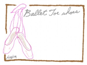 フリー素材:フレーム;大人可愛いバレエのトウシューズのガーリーイラスト:640×480pix