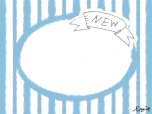ガーリーなパステルブルーのストライプの背景とNewの手書き文字のリボンのフレーム