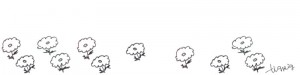 フリー素材:ヘッダー;北欧風のモノトーンの鉛筆画のひな菊いっぱいのイラスト;800×200pix