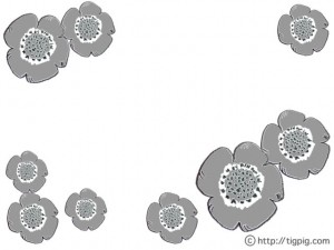 フリー素材:フレーム;北欧風デザインのモノトーンの大人可愛いケシの花の飾り枠;640×480pix