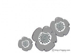 フリー素材:北欧風のグレーのケシの花のイラスト;640×480pix