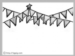 フリー素材:フレーム;大人可愛いモノトーンの旗のイラスト;640×480pix