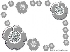 フリー素材:フレーム;北欧風デザインのレトロなグレーのケシの花の飾り枠;640×480pix