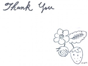 北欧風デザインの鉛筆画のイチゴと花のイラストとThankYouの手描き文字