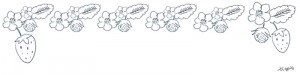 モノトーンの大人可愛い鉛筆画のイチゴの花(800×200pix)