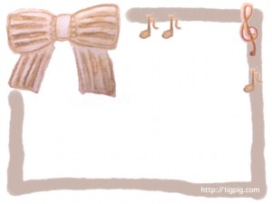 森ガール風の水彩のストライプのリボンと音符とト音記号のフレームのフリー素材