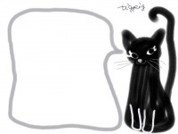 ガーリーな黒猫と吹出しのイラスト(フレーム素材 640×480pix)ダウンロード