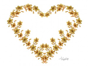 フリー素材:フレーム;大人可愛い水彩の小花のハートの飾り枠;640×480pix