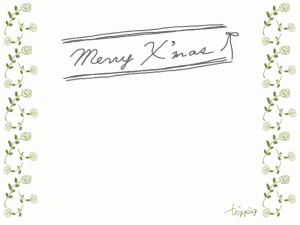 Meery X’masの手書き文字とラインとリボンと鶯色の薔薇のライン。