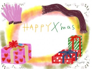 プレゼントと手袋とマフラーのイラストのクリスマスのフリー素材;640×480pix