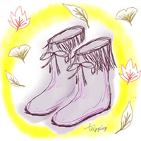 アイコン(twitter)のフリー素材:ガーリーなブーツと紅葉と黄色のにじみの背景;200×200pix