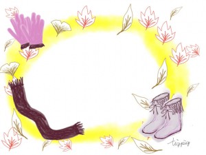 大人可愛いフリー素材:フレーム;ガーリーなブーツと手袋とマフラーのイラストの飾り枠;640×480pix
