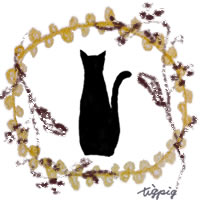 かわいい猫のシルエットとポンポンレースとナチュラルな木の枝のフリー素材:200×200pix