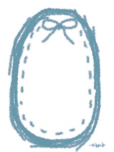 パステルブルーのリボンとステッチのラフなラインの楕円のフレームのフリー素材