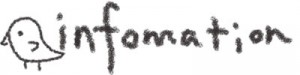ナチュラルなモノトーンのinfomationの手書き文字と小鳥のイラストのフリー素材:400×100pix