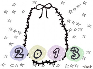 2013 手書き文字と星とキラキラと楕円のリボンのフレームのフリー素材