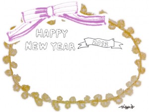 HAPPY NEW YEAR 2013 の手書き文字とリボンとピコットレースのラベルのフリー素材:640×480pix