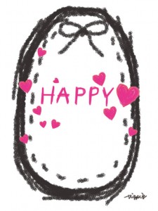 HAPPYの手書き文字とピンクのハートとリボンとステッチのラベルのフリー素材