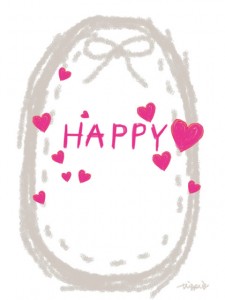 HAPPYの手書き文字とピンクのハートとグレーのリボンとステッチのラベルのフリー素材:480×640pix