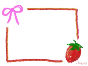 大人可愛いイチゴとリボンとラフなラインの囲み枠のフリー素材:640×480pix