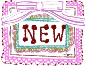 大人可愛い”NEW”の手書き文字とリボンとレースのフレームのフリー素材;640×480pix