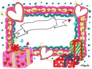 大人可愛いピンクのフレームとプレゼントボックスとハートとリボンのフリー素材:640×480pix