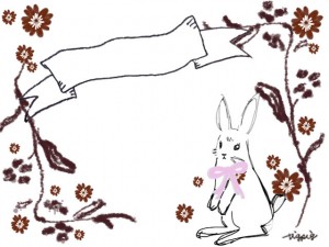 大人可愛いうさぎとナチュラルな木の枝とリボンの見出しのフレーム