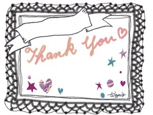 フリー素材:Thank youの手書き文字と大人可愛いレースとリボンの見出しとハートと星のフレーム