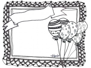 メルヘンでガーリーな風船とモノトーンのレースのフレーム
