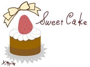 大人可愛いHP制作に使えるイチゴケーキとリボンのイラストとSweet Cakeの手書き文字
