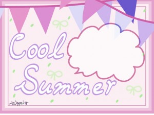 夏のHP制作に使えるピンク系の旗とフキダシとCool Summerの手書き文字のフレーム